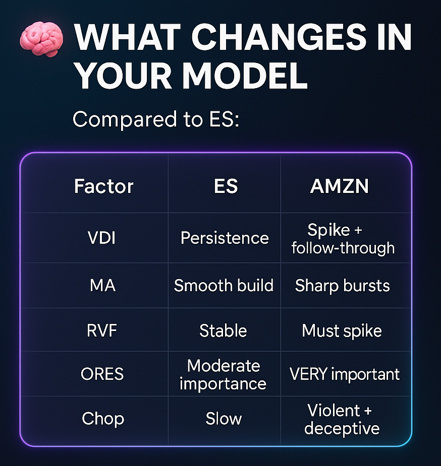At SPX Direction, we have rebuilt the entire framework from scratch for Amazon (AMZN) — based on how it actually trades. The original SPX Direction algorithm was designed specifically for ES (and by extension SPX / SPY). We are also rolling out our algorithm for Amazon, ahead of schedule.