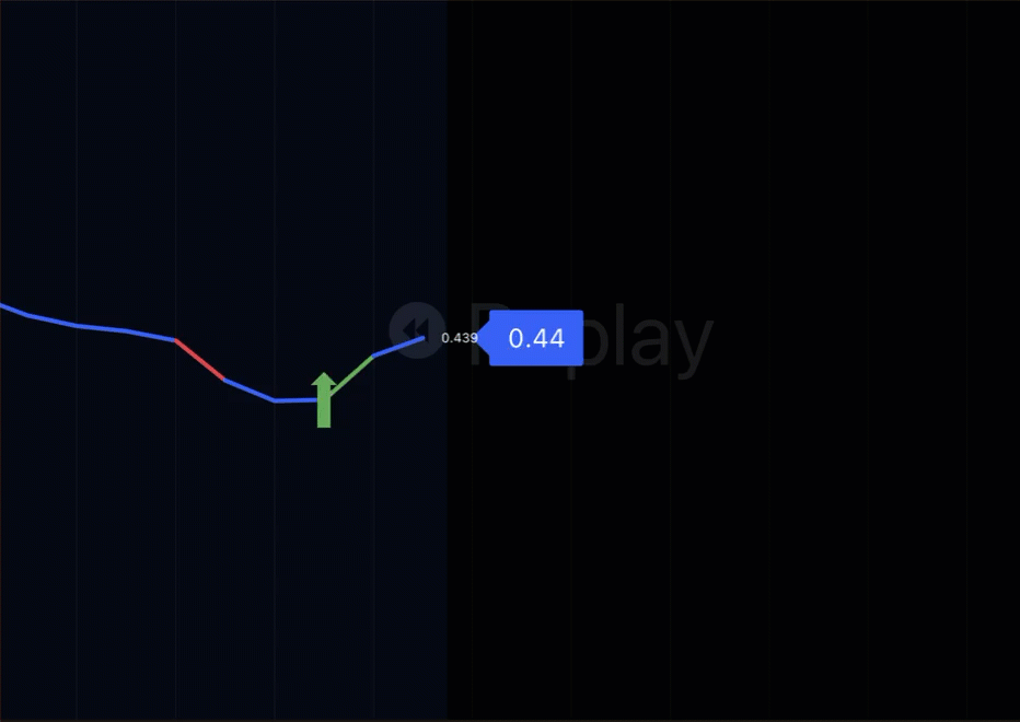 If the trend is bullish, the indicator will provide a green arrow signalling the beginning of an upward trend. The greater the momentum of the underlying trend, the sharper the angle of the momentum line. If the momentum line is at an 80° angle, the trend is stronger compared to a 45° angle.
