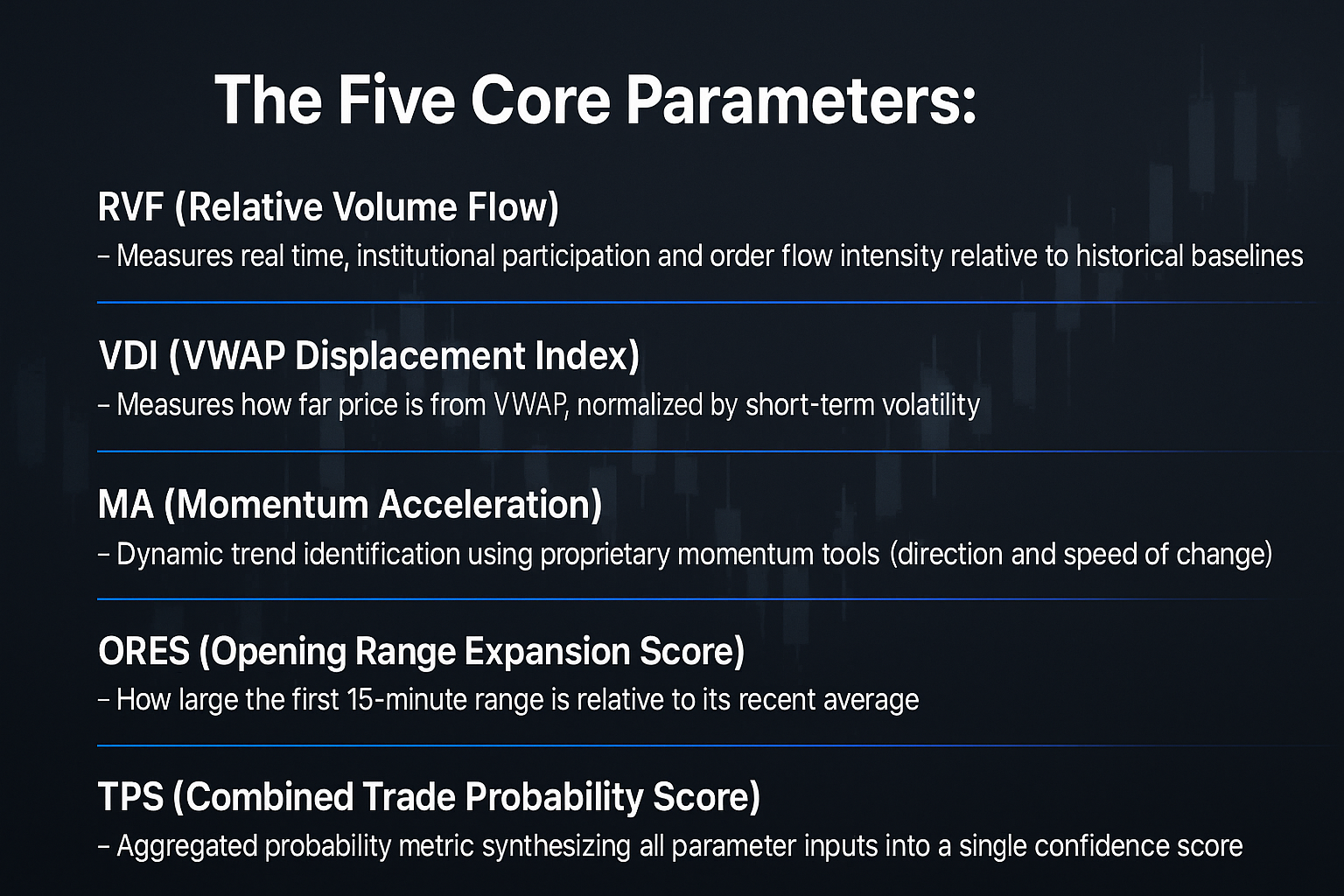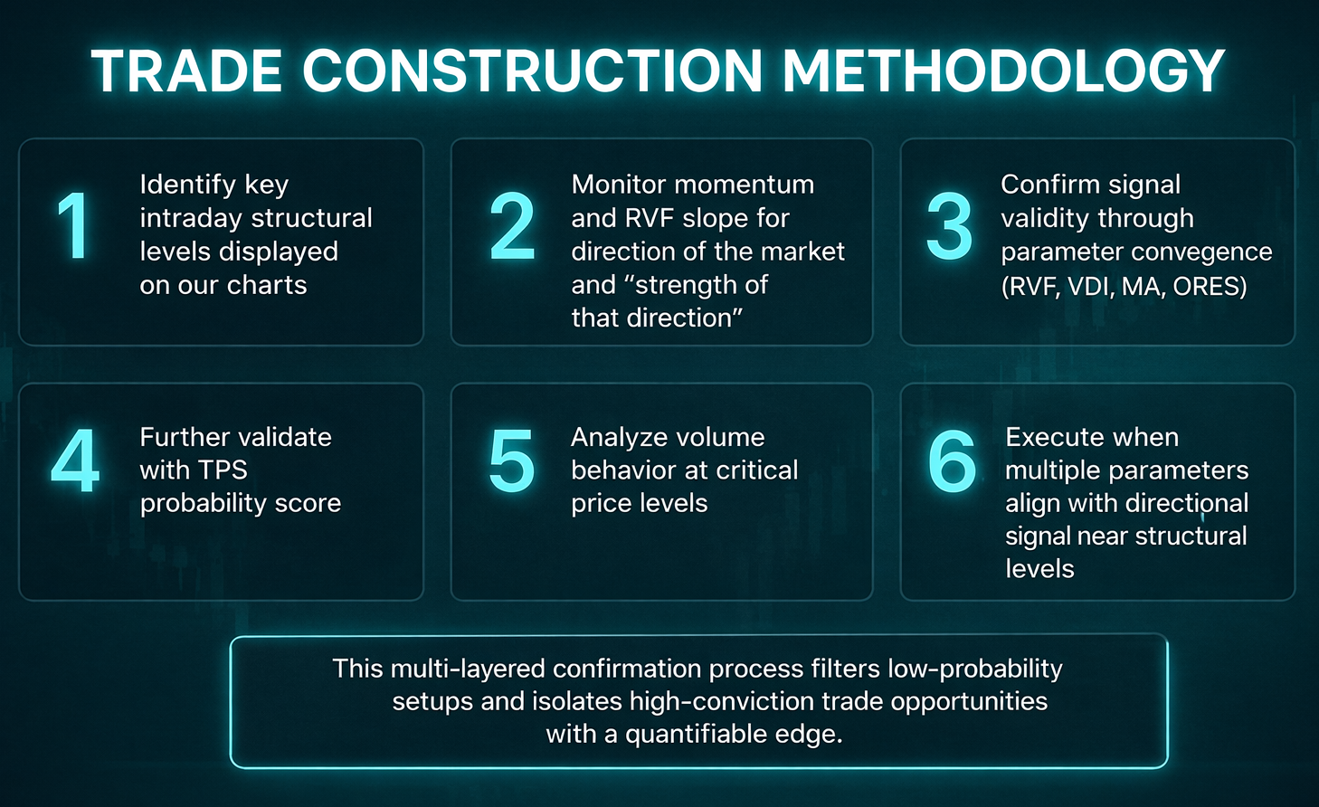 This is your tactical layer. While intraday levels tell you WHERE the market may react, the five parameters plus volume analysis tell you WHEN to execute and in WHICH direction.