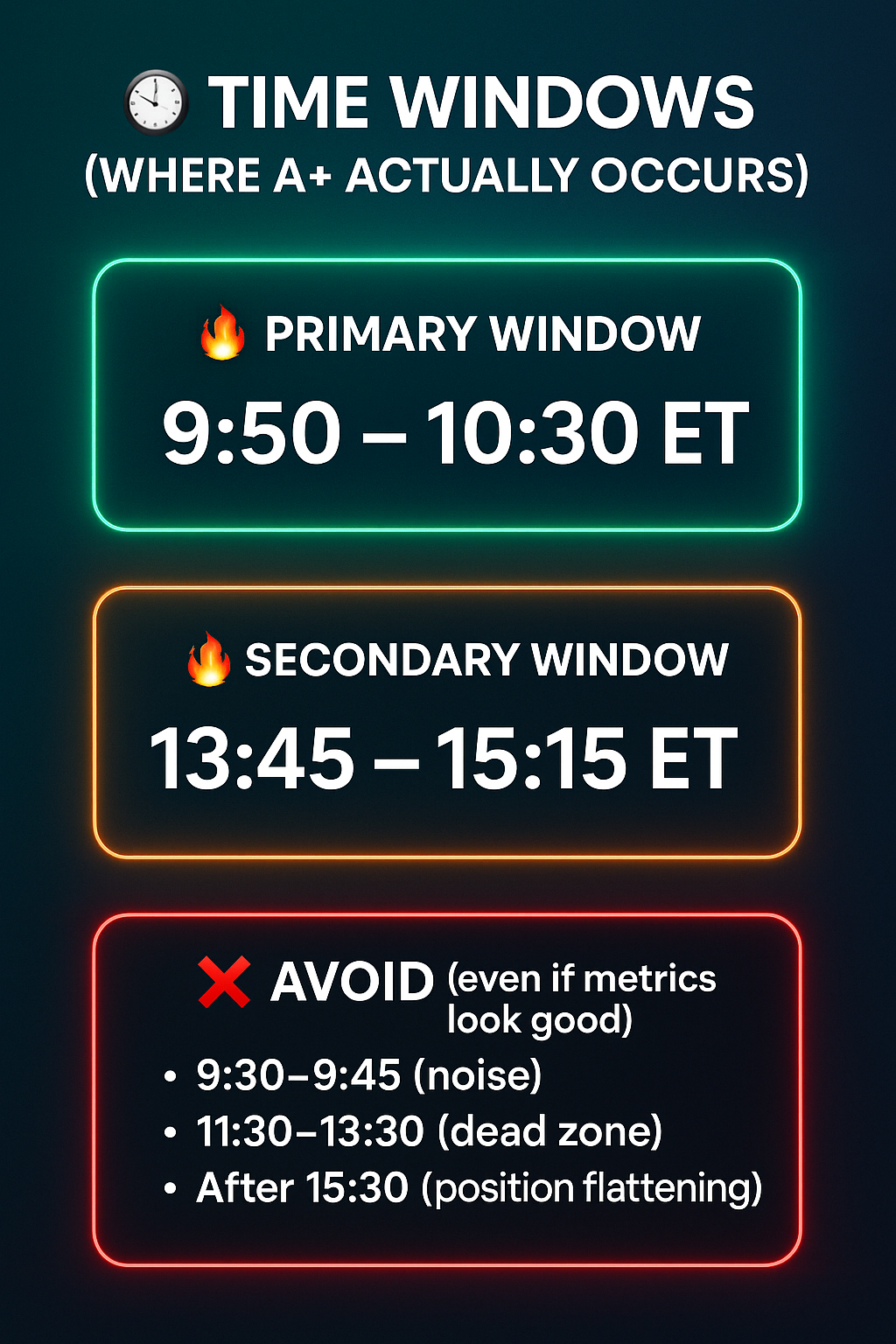 A+ = Sustained displacement + accelerating momentum + confirmed participation + alignment with session phase